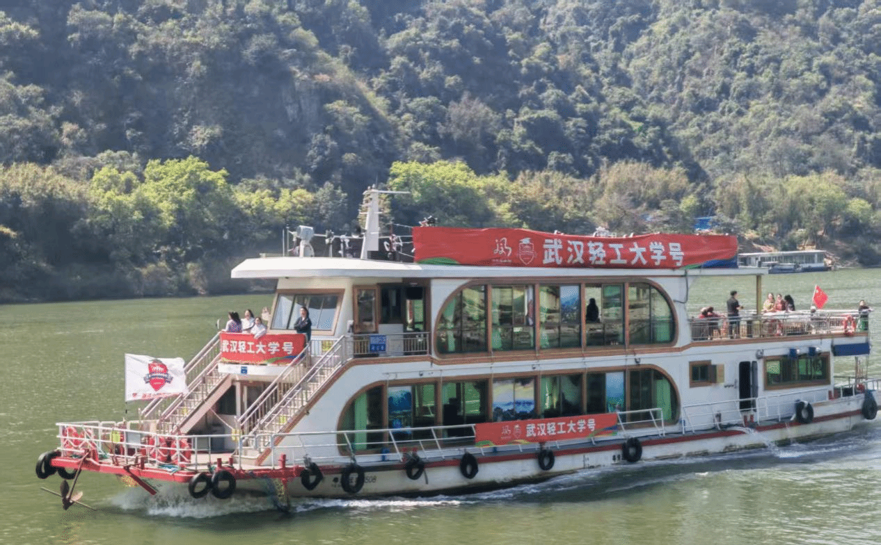 凭借在高校马拉松联赛中的亮眼表现,武汉轻工大学成功入选赛事“百校千人游北江”活动指定院校,3月14日,以学校命名的专属游船“武汉轻工大学号”正式亮相北江,与“清华大学号”、“浙江大学号”等共计15艘名校游船并泊北江。